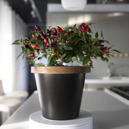 Cette jardinière innovante, c’est la formule tout inclus de la culture à domicile! Elle contient un substrat dans lequel se trouvent des semences biologiques et sans OGM. En exploitant le phénomène de la capillarité, le substrat permet l’autorégulation de l’eau, des nutriments et de l’oxygène. Ainsi, il n’y a plus à s’inquiéter d’avoir trop ou pas assez arrosé. Lorsque le réservoir d’eau est vide, votre jardinière vous en avise! Après environ 6 mois, le plant aura terminé sa production. 100 % naturel et biodégradable, vous pourrez alors en disposer dans le compost et partir un nouveau plant.