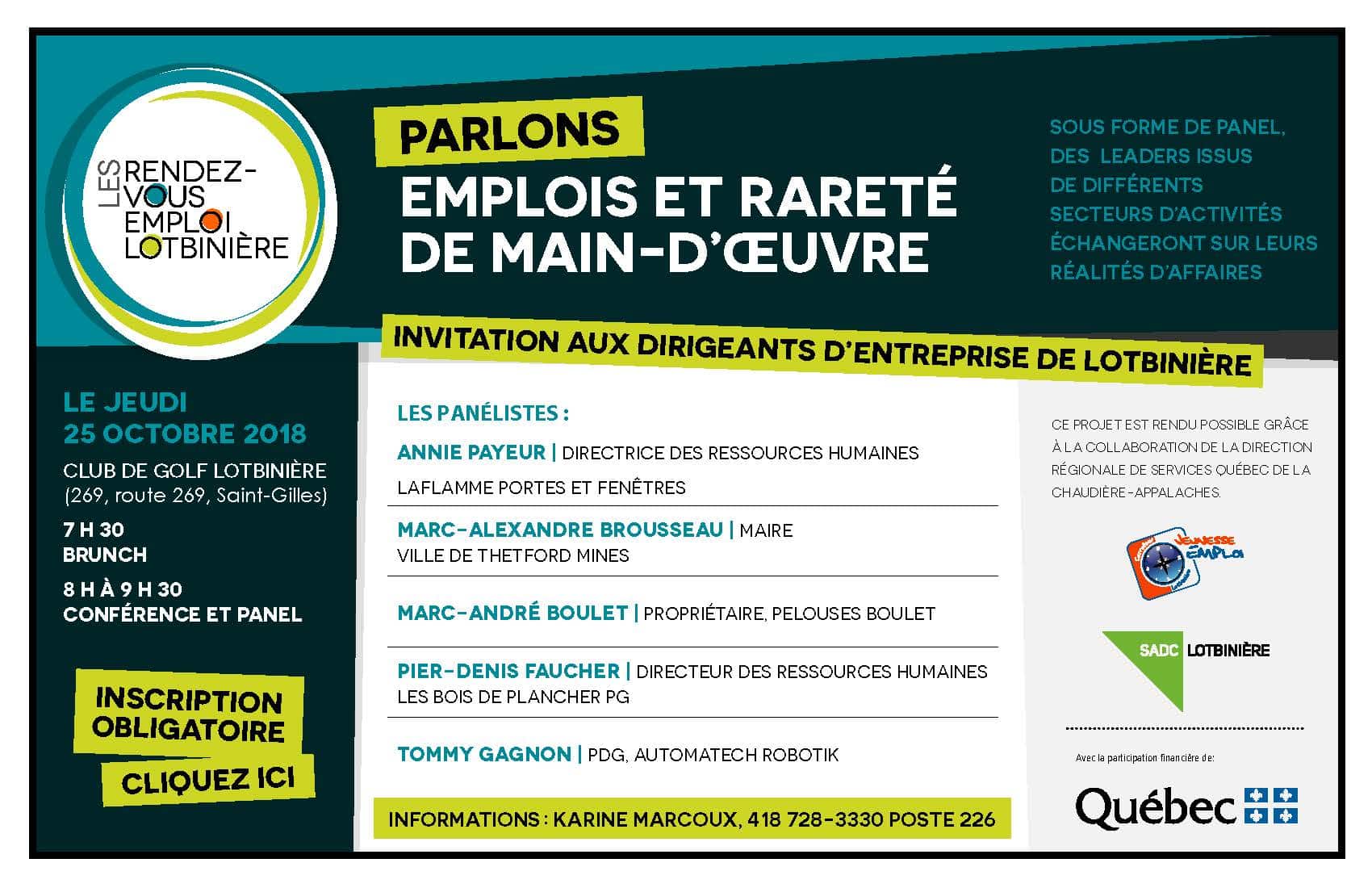 C’est dans ce contexte que le Comité main-d’œuvre Lotbinière a invité les dirigeants d’entreprises et les élus à participer au déjeuner-conférence « Parlons emploi et rareté de main-d’œuvre ».